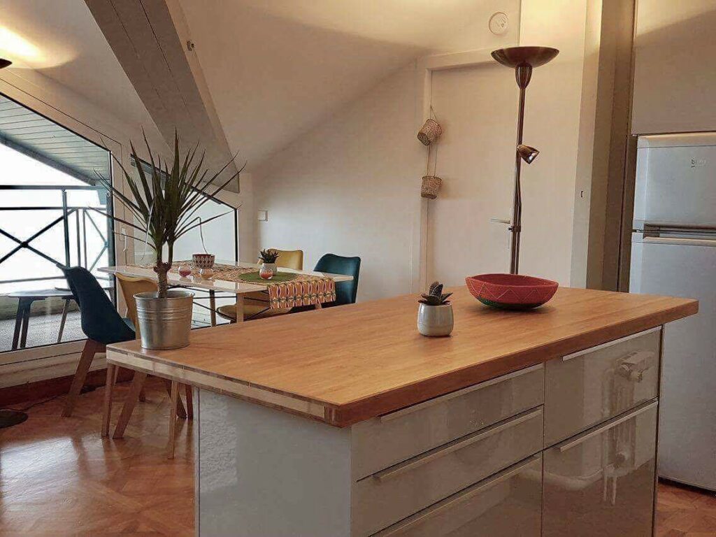 Chambre de 15 m2 avec lit de 160 cm (possibilité de faire dormir un enfant dans un petit lit à coté). Salon avec canapé convertible 2 places de 140cm (véritable couchage). Cuisine américaine tout équipée. Terrasse 12m2 avec un salon pour se détendre et manger, 1 salle d’eau et toilette, 1 parking ferme wifi. Pour vous déplacer, des VTTs sont proposés en location , nombreuses pistes cyclables, dont la promenade sur la baie, le long de la plage …